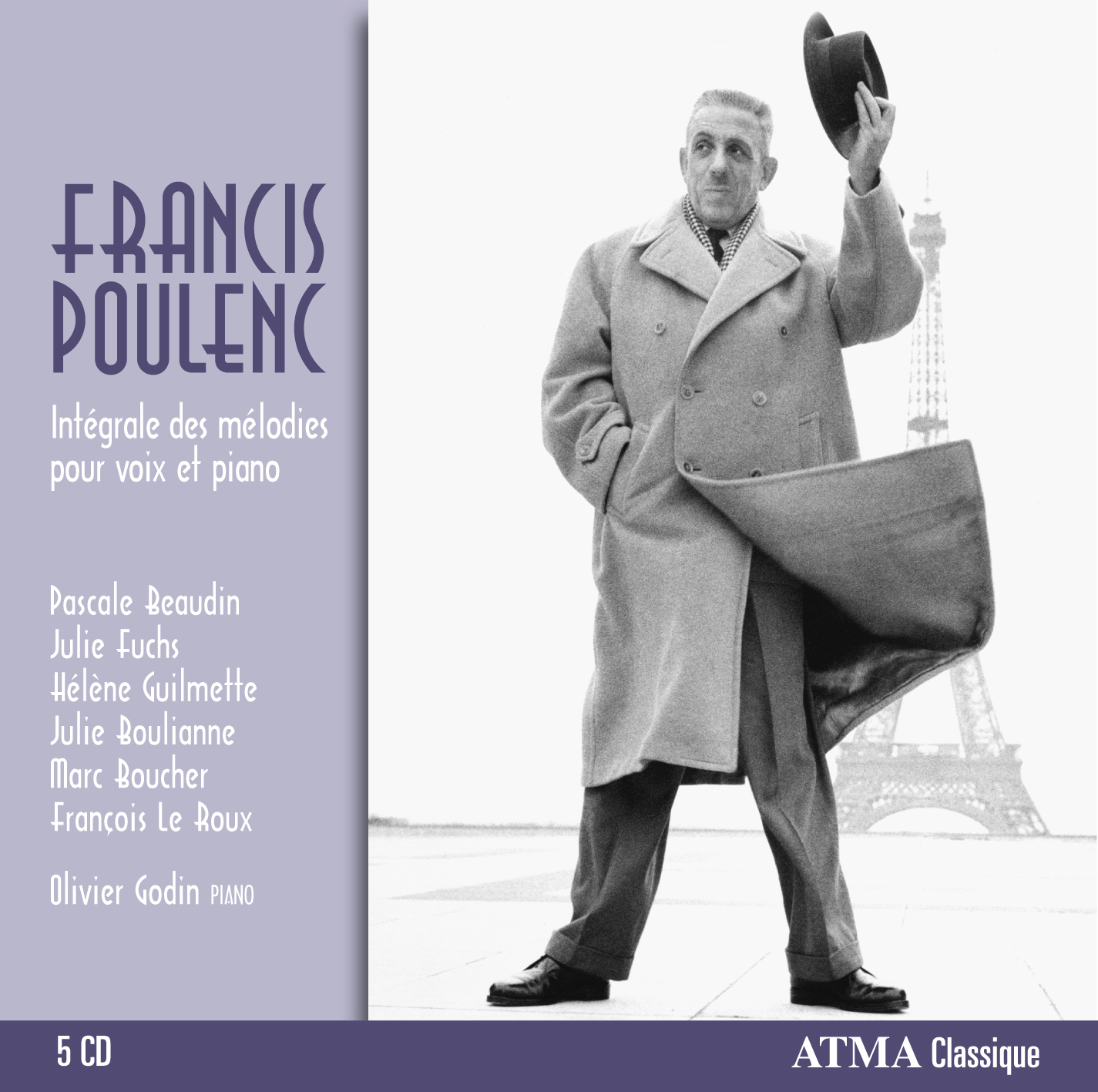 ATMA Classique proudly announces a landmark recording of Francis Poulenc’s complete works for voice and piano, featuring pianist Olivier Godin and singers Pascale Beaudin, Julie Fuchs, Hélène Guilmette, Julie Boulianne, Marc Boucher, and François Le Roux. This milestone album is a joint production between ATMA, CLEF (Centre lyrique d’expression française) and the Festival Classica, and features the first-ever recording of three unpublished songs by Poulenc.